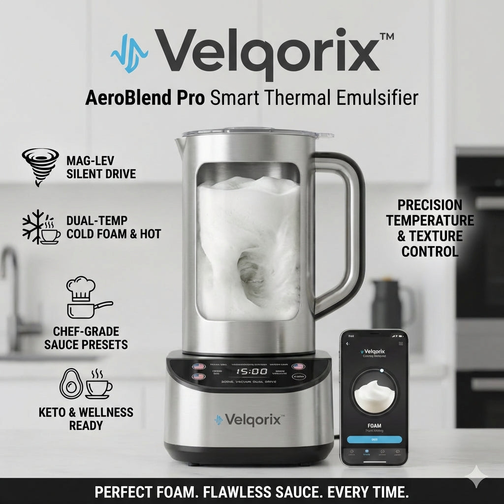 Elevate your morning ritual and weekend brunch to Michelin standards without the hassle. The Velqorix™ AeroBlend Pro is not just a frother; it is a high-precision Magnetic Levitation Emulsifier designed to master the two hardest things in the kitchen: perfect texture and precise temperature control. Whether it’s the trendy "Cold Foam" for your iced coffee or a delicate Hollandaise sauce that never breaks, this device does it all with a single touch.